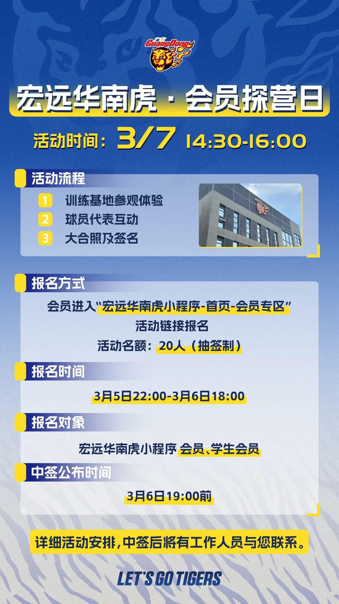华体会体育-3月7日,首个宏远华南虎·会员探营日来啦!