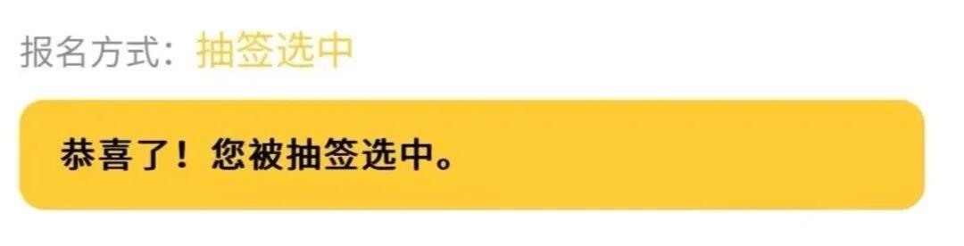 3月6日19:00前,如您被抽中参与活动,报名页面将显示“恭喜了!您被抽签选中”